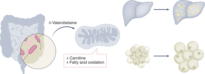 Whether and how host energy metabolism can be controlled by commensal microorganisms remains controversial. New work shows that the microbe-derived metabolite δ-valerobetaine contributes to obesity and hepatic steatosis by modulating mitochondrial fatty acid oxidation and increasing lipid storage in the adipose tissue and liver.