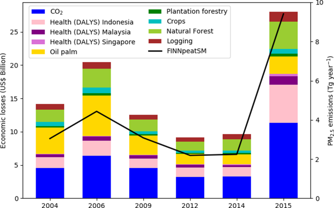 Deforestation and drainage have made Indonesian peatlands susceptible to burning. Here the authors find that Indonesia’s 2015 fires resulted in economic losses totaling US$28 billion, while the area…